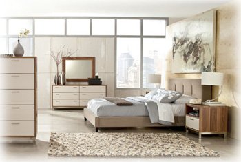 Rich brown finish over replicated wood grain combined with high gloss taupe color fronts